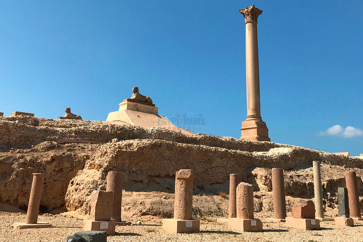 Depois de tomar o café da manhã no Cairo, embarque em uma excursão de um dia para Alexandria, uma cidade costeira histórica com um rico patrimônio. Visite as seguintes atrações: